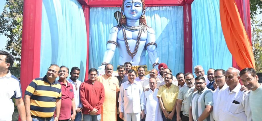 जेसीआई कोरबा द्वारा मोतीसागर बस्ती के समीप मुक्तिधाम में भगवान शंकर की 18 फीट ऊंची मूर्ति की कैबिनेट मंत्री सह कोरबा नगर विधायक लखन लाल देवांगन ने पूजा-अर्चना कर अनावरण किया।