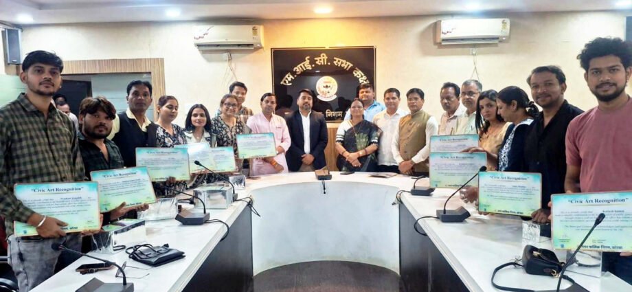 यहॉं उल्लेखनीय है कि महापौर श्रीमती संजूदेवी राजपूत एवं आयुक्त श्री आशुतोष पाण्डेय के मार्गदर्शन में ऊर्जाधानी कोरबा शहर के सौदंर्यीकरण को मूर्तरूप देने की दिशा में नगर पालिक निगम कोरबा व आर्टिस्ट गु्रप आफ कोरबा की संयुक्त पहल पर दिसम्बर 2025 में क्रिएटिव कार्नर अभियान का शुभारंभ किया गया था, सुभाष चौक से कोसाबाड़ी की ओर जाने वाले मुख्य मार्ग की दीवाल पर महापौर श्रीमती राजपूत व आयुक्त श्री पाण्डेय ने ब्रश उठाकर पेंटिंग की थी तथा ’’ क्रिएटिव कार्नर ’’ की शुरूआत हुई थी। निगम के सहयोग से आर्टिस्ट गु्रप आफ कोरबा के कलाकारों, आर्टिस्टों ने अपनी कला प्रतिभा का प्रदर्शन करते हुए थीम आधारित चित्रकारी व पेंटिंग कर स्थल को सजाया, संवारा था। निगम व आर्टिस्ट गु्रप के संयुक्त सहयोग से क्रिएटिव कार्नर अभियान के तहत आगे भी शहर सौदंर्यीकरण पर कार्य करते हुए शहर के मुख्य मार्गो, सपर्क सड़कों, चौक-चौराहों, सार्वजनिक स्थलों एवं उपेक्षित पडे़ स्थानों पर थीम आधारित पेंटिंग, चित्रकारी किए जाने का यह अभियान सतत रूप से जारी रहेगा। आज नगर पालिक निगम कोरबा के मुख्य प्रशासनिक भवन साकेत में महापौर श्रीमती संजूदेवी राजपूत ने आयुक्त श्री आशुतोष पाण्डेय व सभापति श्री नूतन सिंह ठाकुर की विशेष उपस्थिति में आर्टिस्टों को सम्मानित किया। इस अवसर पर वरिष्ठ पार्षद नरेन्द्र देवांगन, मुुकुंद सिंह कंवर, अपर आयुक्त विनय मिश्रा, अधीक्षण अभियंता सुरेश बरूआ, स्वास्थ्य अधिकारी डॉ.संजय तिवारी, जनसंपर्क अधिकारी रावेन्द्र सिंह, निगम सचिव रामेश्वर सिंह कंवर, सहायक अभियंता राहुल मिश्रा, पीआईयू पंकज गभेल व धनमोहन रात्रे आदि के साथ अन्य लोग उपस्थित थे।