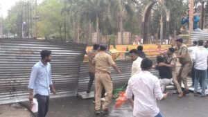 प्रदर्शन के दौरान मनरेगा के नाम और स्वरूप में किए जा रहे बदलावों को लेकर कार्यकर्ताओं में भारी आक्रोश देखने को मिला। इस बीच कुछ कार्यकर्ताओं ने पुलिस बैरिकेड गेट को धकेलते हुए आगे बढ़ने का प्रयास किया। हालांकि पुलिस ने स्थिति को संभाल लिया और हालात को नियंत्रित रखा।