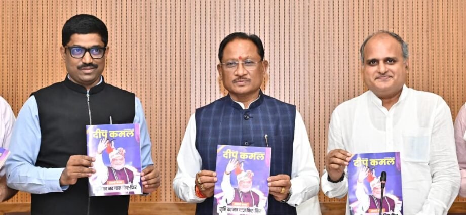 प्रदेश के मुख्यमंत्री श्री साय ने प्रकाशन की सफलता की शुभकामनाएँ देते हुए विश्वास व्यक्त किया कि ‘दीपकमल’ का यह विशेषांक प्रदेशवासियों तक केंद्र और राज्य सरकार की नीतियों, जनकल्याणकारी योजनाओं तथा विकास से जुड़े महत्वपूर्ण विषयों को प्रभावी ढंग से पहुँचाने का सशक्त माध्यम बनेगा। इस अवसर पर प्रदेश प्रकाशन विभाग के संयोजक और ‘दीपकमल’ के संपादक पंकज झा, पत्रिका के प्रबंध संपादक हेमंत पाणिग्रही समेत पार्टी मीडिया विभाग के सदस्यगण भी उपस्थित रहे।