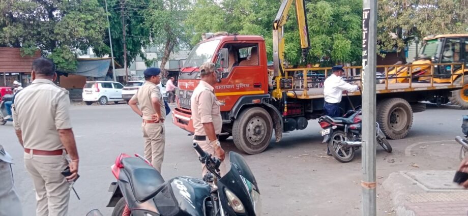 बिलासपुर छत्तीसगढ़ वरिष्ठ पुलिस अधीक्षक श्री रजनेश सिंह के दिशा निर्देश एवं अतिरिक्त पुलिस अधीक्षक यातायात रामगोपाल करियारे के नेतृत्व में यातायात पुलिस बिलासपुर द्वारा पूरी अमला के साथ आज विभिन्न चौक चौराहे पर कार्यवाही करते हुए यातायात नियमों का उल्लंघन कर अवैध पार्किंग, मुख्य मार्ग में बेतरतीब तरीके सेContinue Reading