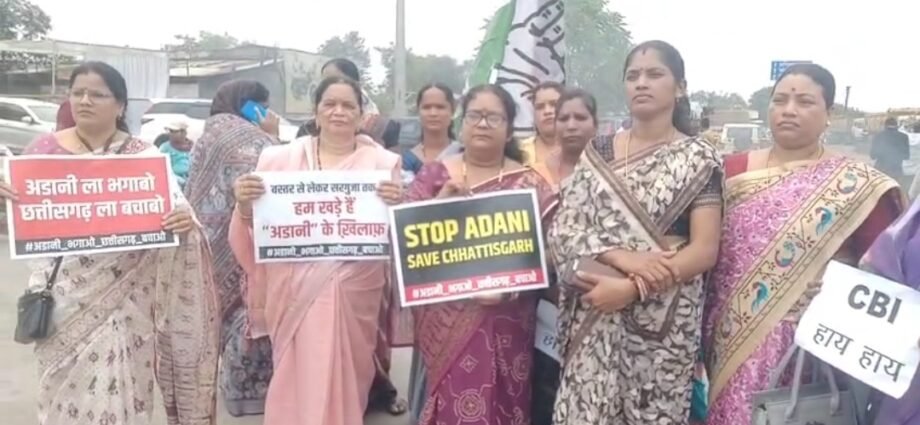 चैतन्य बघेल की गिरफ्तारी के विरोध में कांग्रेस का प्रदेशव्यापी प्रदर्शन, कटघोरा में मोदी-अडानी का पुतला दहन